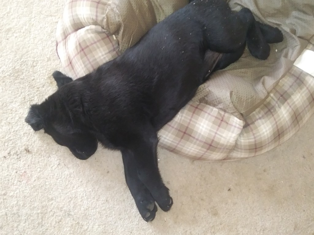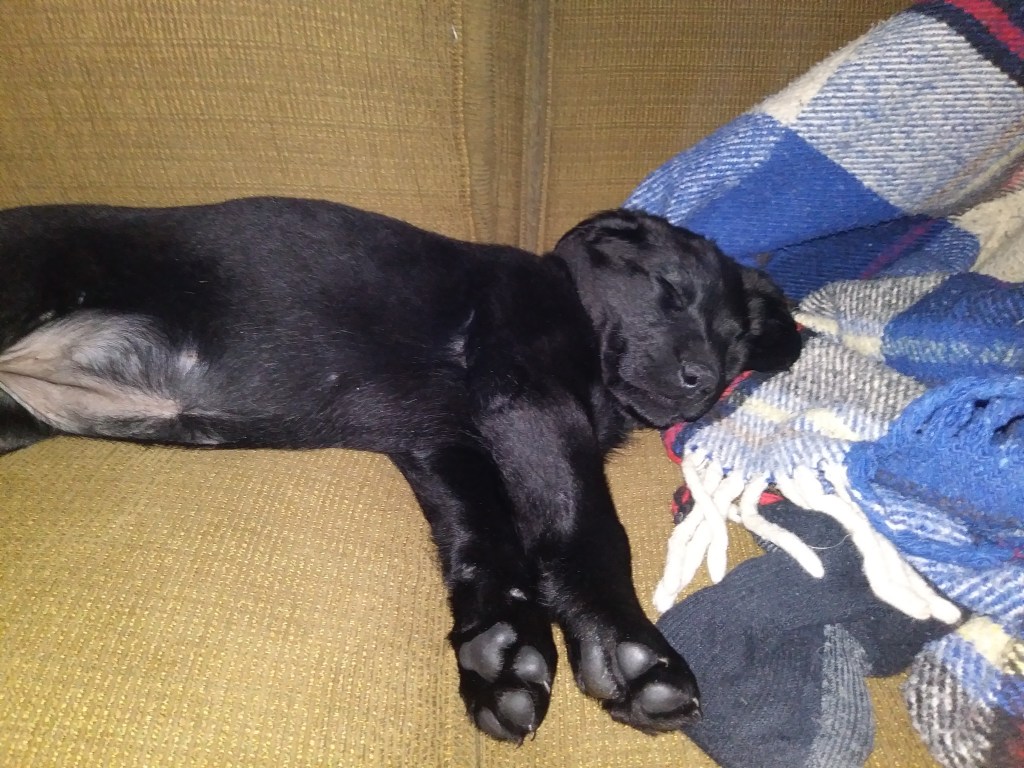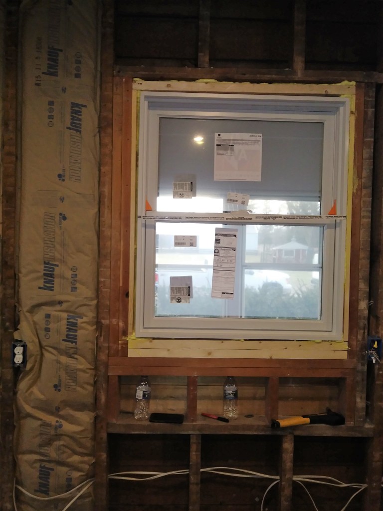 I forgot to show you the before and after of widening the opening of the Kitchen to have a better flow to the Dining room! The past few says have been busy! I installed Insulation. All by myself I might add! My Hubby Dave installed a narrow strip by the window in which I promptly told him he wouldn’t be taking any credit for insulation on our blog Hehe ; ) Dave did a fabulous job on the new windows though! ( And everything else in the Kitchen that has been done so far) Did I mention we got a new Puppy through all of this!? Josey looks so sweet when she sleeps doesn’t she? When awake she is the Demon’s seed, But we still love her! She was an early Birthday gift to me by my wonderful Mother in Law : ) The Drywall for the ceiling went up yesterday and is continuing today. I’m so excited! I should be able to put a coat of paint on by Thursday! I’m still fighting with the Hubby to keep the original floor (It has a ton of water stains from the original leaking sink and isn’t able to be sanded out) I may change my mind if we can find the same plank width.