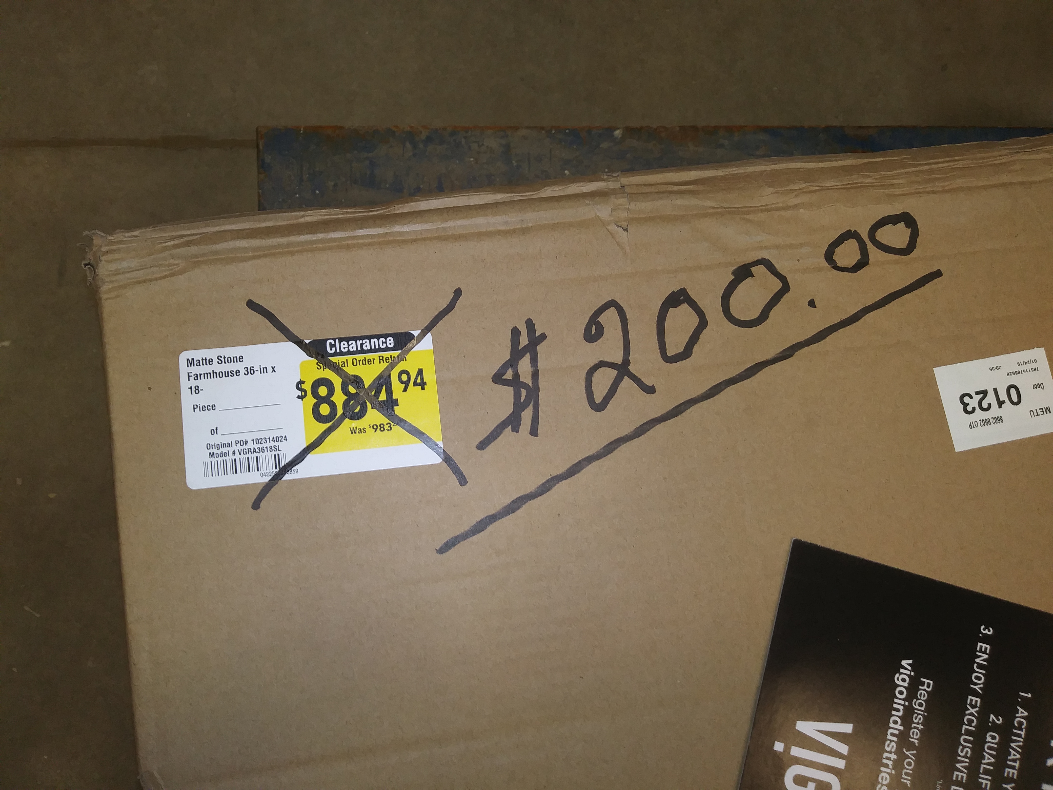 (Now at this point I am fully prepared to start foaming at the mouth and will bite the hand that tries to take my $200.00 sink away from me) and to my surprise the Manager typed in a few numbers and my sink rang up for $200.00!! PHEW! I floated out the door with my Husband laughing the whole time : )
