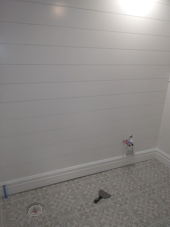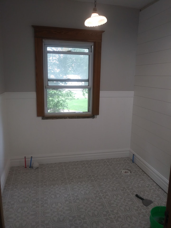 Whew! Its been awhile and we’ve done many projects! Now that we’ve gotten a lot done, I can get back to a little normalcy and start blogging again : ) But first, well begin again with the Master bath. This is the before. Although I do like certain aspects of the Bathroom, its a bit to country for me and wayyy to much wood. I prefer a Modern Farmhouse/Cottage style so I went to work steaming all that wallpaper off and painting! My Hubby did a great job on the rest of this room by adding wainscoting, a shiplap accent wall and floor tile.