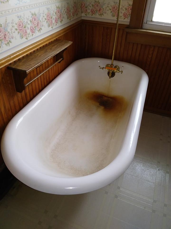 Now for the newly refinished claw foot tub! Hang tight! This is a long post. Here she is before: