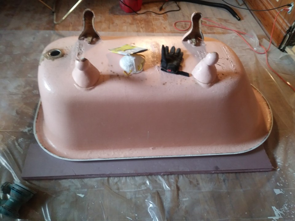 Looking at it like this I was pretty sure it was the perfect white and id have to do no more YAYY! at this point I was pretty damn proud of myself! but alas it wasn’t the correct white after it dried. I used 80 grit sand paper (wait at least 24 hours to sand) on an orbital sander to get the epoxy smooth after it was dry ..Over kill? perhaps, but epoxy is VERY hard to sand so I figured id save my arm and get it mostly done with the sander and finish hand sanding with 80 grit to feather it in on the sides. You can also use a mouse sander if you’re more comfortable but it will take longer. here she is all sanded!