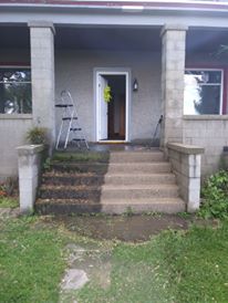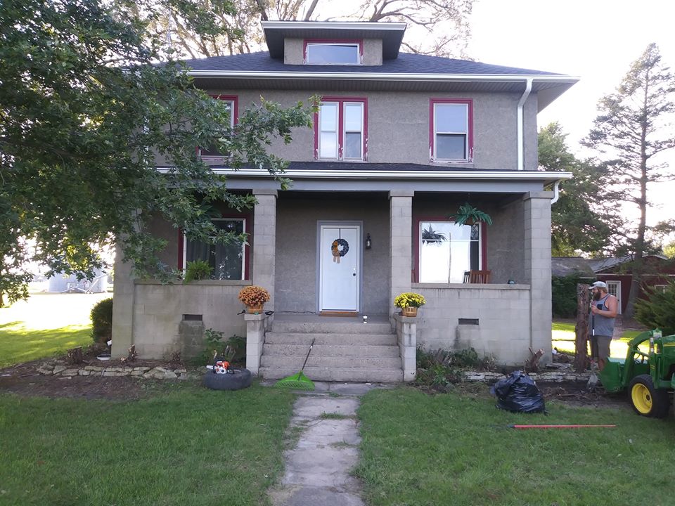 Here’s the House. The house exterior was pretty gloomy looking! We got a new roof, ripped out the bushes and power washed the house. We couldn’t believe there was actually a wrap around sidewalk and beautiful flagstone border under those overgrown bushes! My hubby also hung a porch swing that I’ve always wanted. I cant wait to decorate the swing and have coffee on the porch in the Spring. We’ll add a few smaller bushes, flowers and some new window trim to the front next spring. Although its not finished, I believe there is a big improvement.
