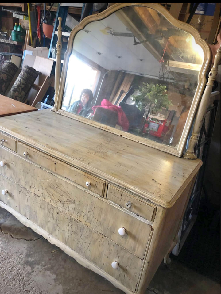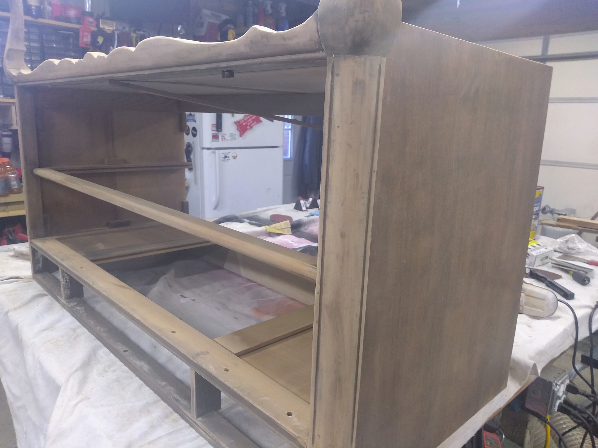 As luck would have it, I was able to find the perfect size so we could buy a pre made Marble countertop instead of having it specially made which was way more expensive! I refinished this Dresser and mirror by removing the paint and sanding. It turned out beautifully!